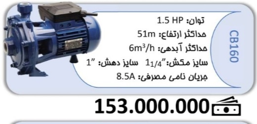 پمپ 1/5 اسب الکتروژن CB160۱۵٬۳۰۰٬۰۰۰ تومان