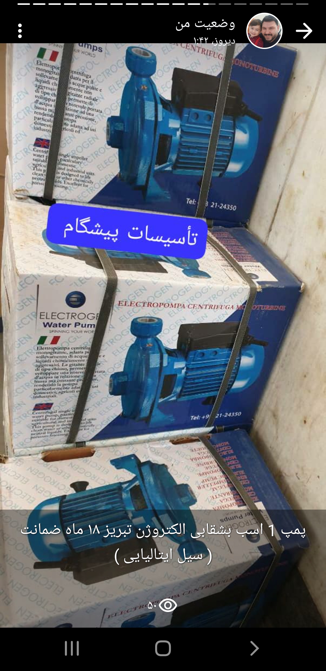 پمپ ۱ اسب بشقابی الکتروژن۷٬۶۰۰٬۰۰۰ تومان